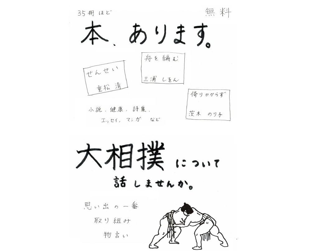 読書や相撲が好きな方、徒歩で来ていただける方、ぜひご参加ください。