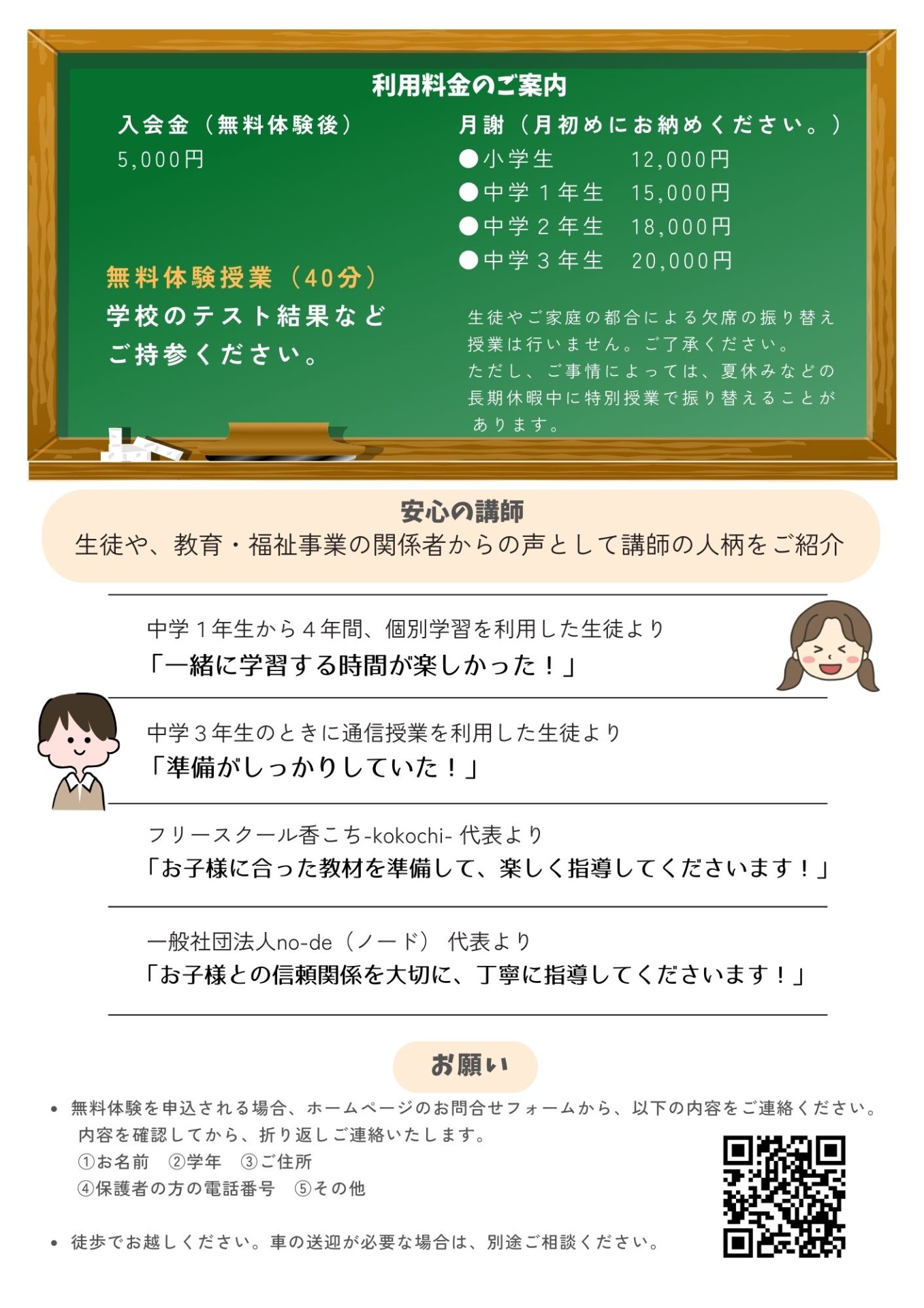 (2)他のフリースクールと併用される場合、入会金が無料になります。